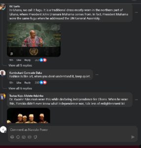 The comments, however, did not go unanswered. Many Ghanaians quickly pushed back, defending the President’s choice of attire and highlighting its deep cultural and historical significance. The back-and-forth soon escalated into a broader online debate involving users from both countries.